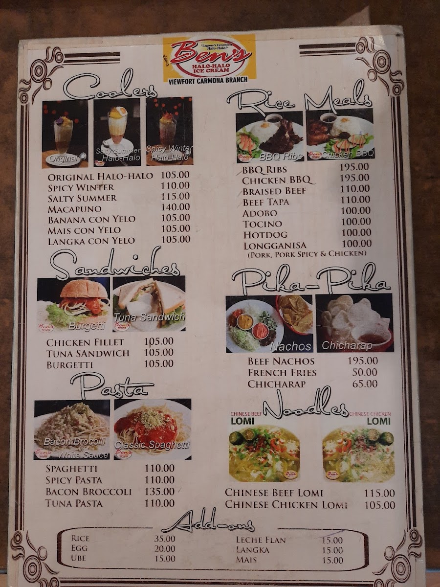 Introducing the Menu at Ben's Halo-Halo Viewfort